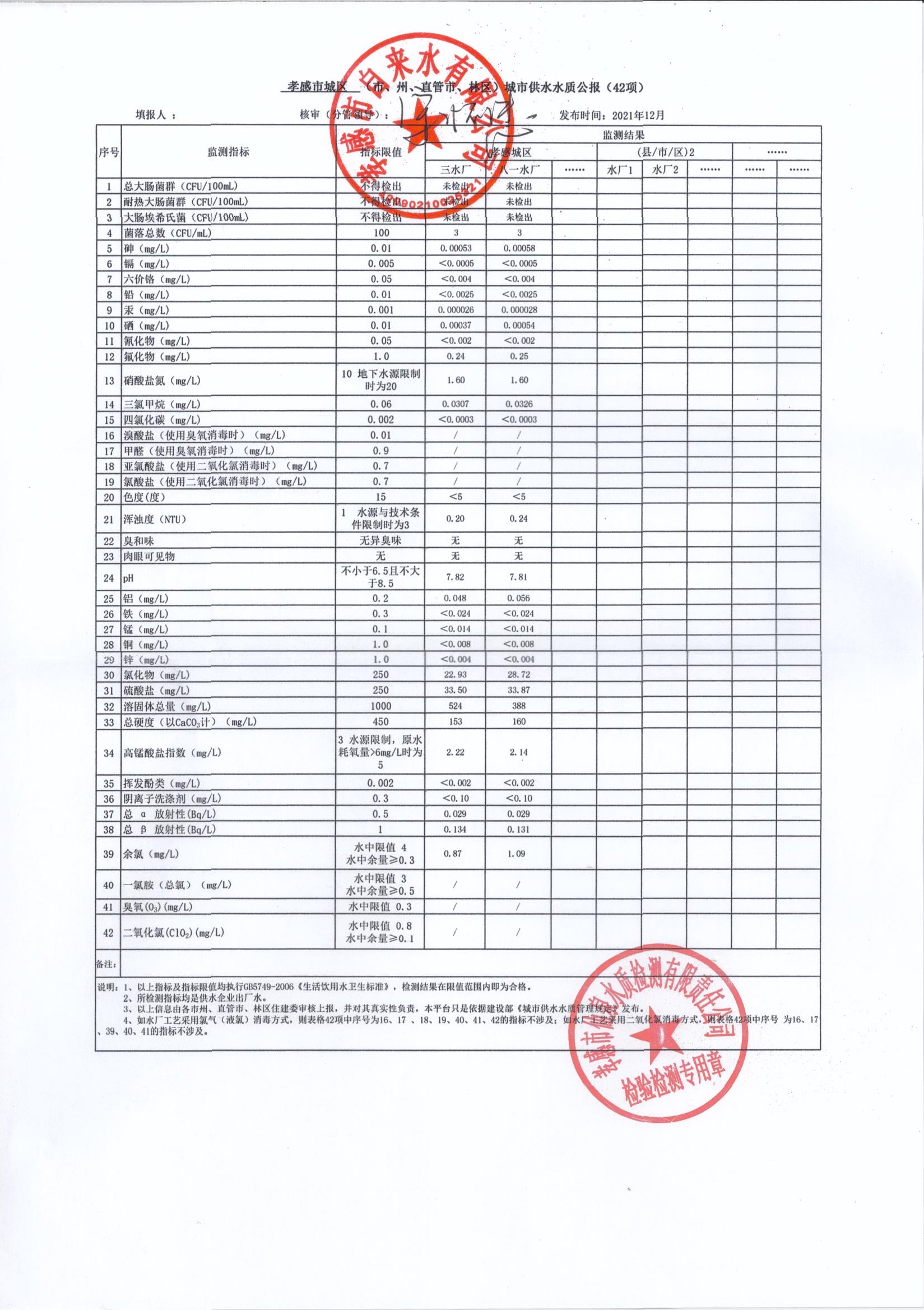2021年12月水质报告