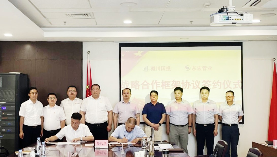 6月28日,公司与山东东宏管业签署战略合作框架协议,发挥各自优势进行产业链招商、水务水利项目合作。东宏管业副董事长、总裁倪奉尧,澴川国投总经理陈情出席签约仪式并讲话。