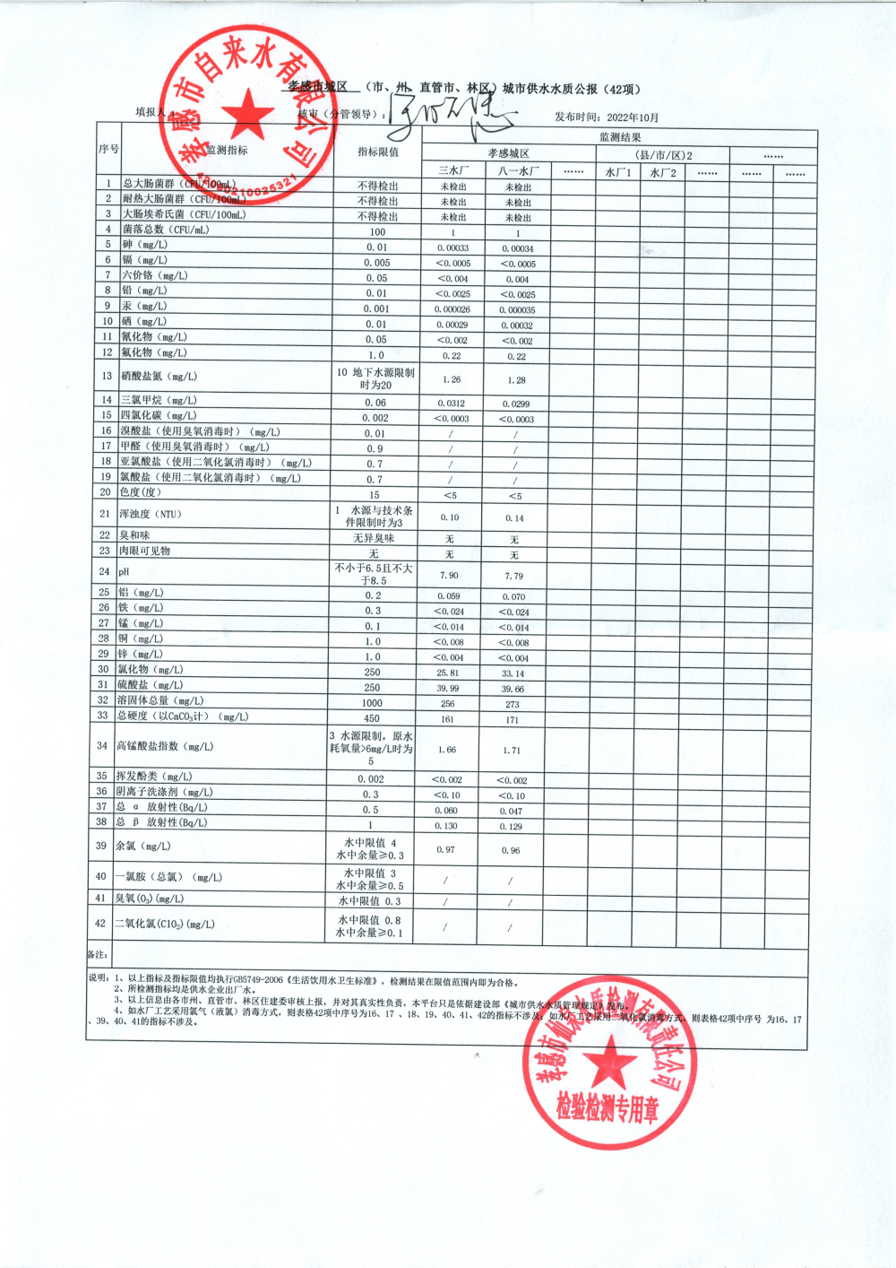 2022年10月水质报告
