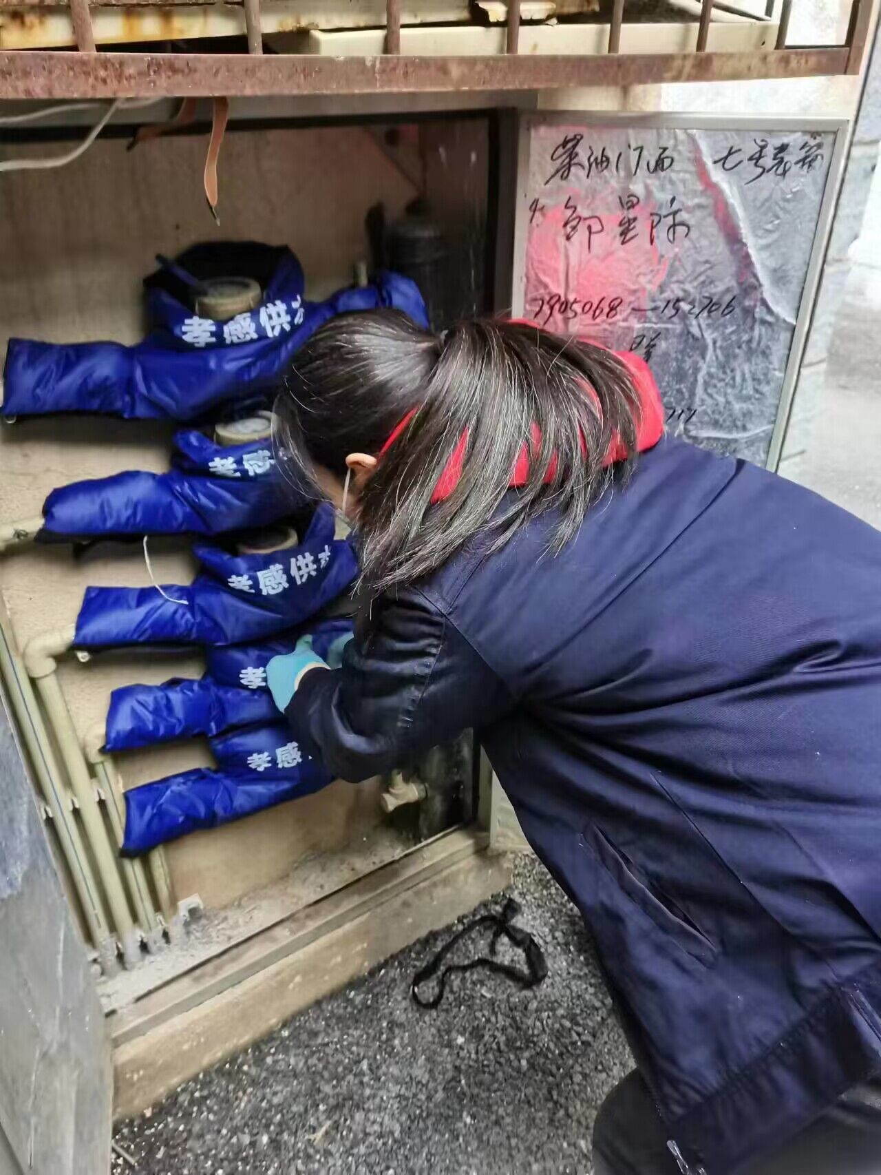 客户服务部提前准备了充足的保温防冻物资,对供水设备、设施采取“穿衣戴帽”等方式,做好防冻保温措施。对水表池、管道井和重点区位的公共供水管道进行了普查和维护。并做好供水管网及消防栓的巡检维护,为易冻水管穿上了“棉衣”,对存在安全隐患的进行维修和更换。