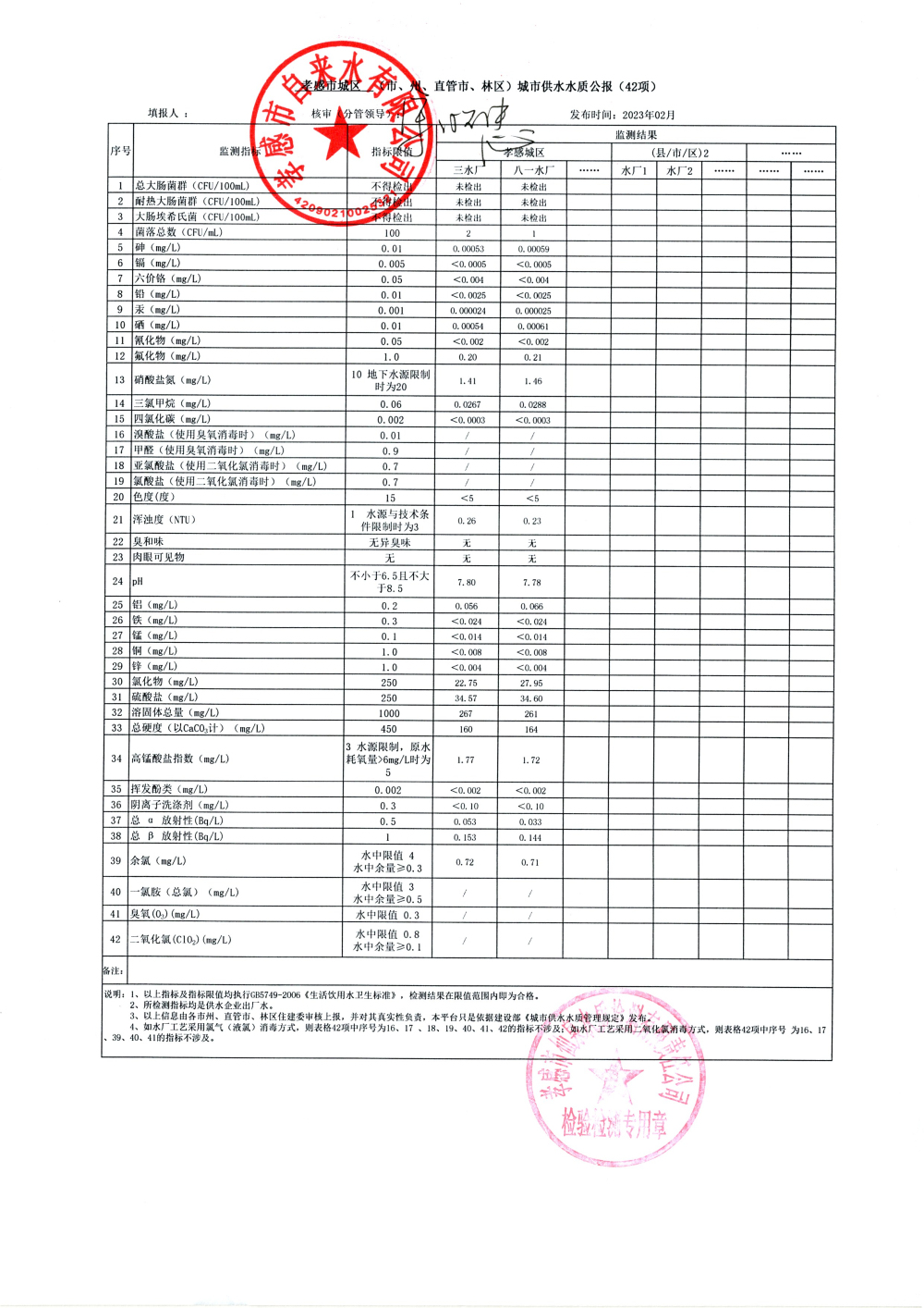 2023年2月水质报告