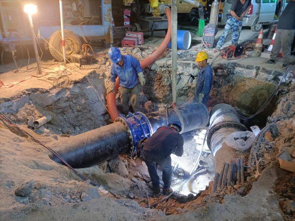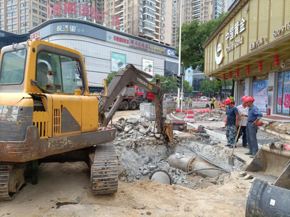 经测算,此次城站路-长征路段改造老旧管网共计773米,采用球墨铸铁管DN500口径管材。由于该路段岔路口较多,南北侧共计需安装16处支管,施工难度大。为确保工程进度,8月19日,我公司工作人员提前进场,倒排工期,抽调人员24小时驻守现场,统筹协调,全力配足人力及机械。同时,科学安排昼夜轮班施工,在保证质量的前提下快速推进整体项目进度。
