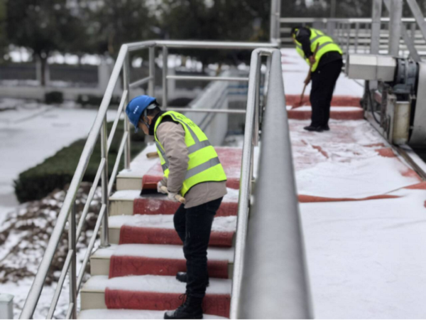 以雪为令,雪停路清。22日早上7点,公司派出5名志愿服务队员参与公交站台扫雪除冰行动,有力保障群众公交出行安全。除此之外,为了保证生产厂区道路畅通,公司采取有力举措,仙女湖水厂、二水厂、一水厂、龙宫等多个办公区域共调动工作人员100余名和2台铲车,采取撒盐破冰、铲雪等方式,确保生产及办公区域道路畅通。