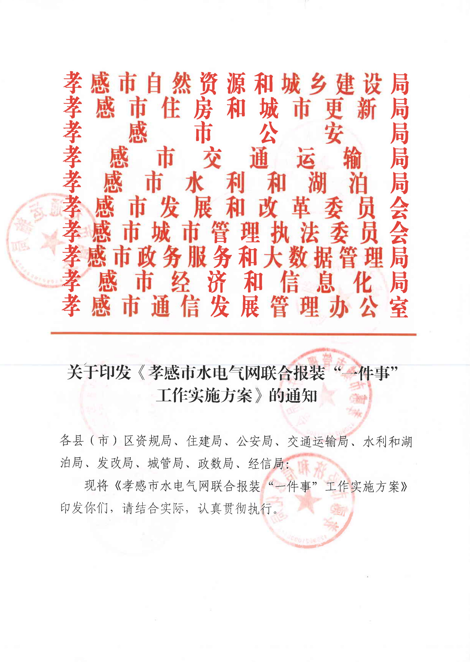 关于印发《孝感市水电气网联合报装“一件事”工作实施方案》的通知