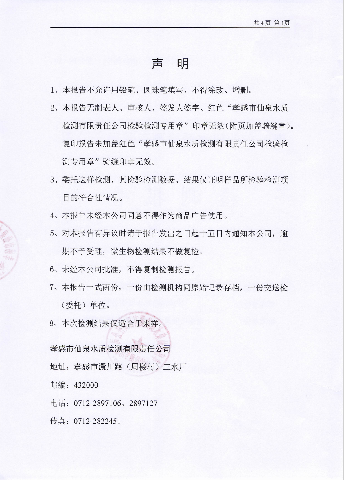 管网水水质公告