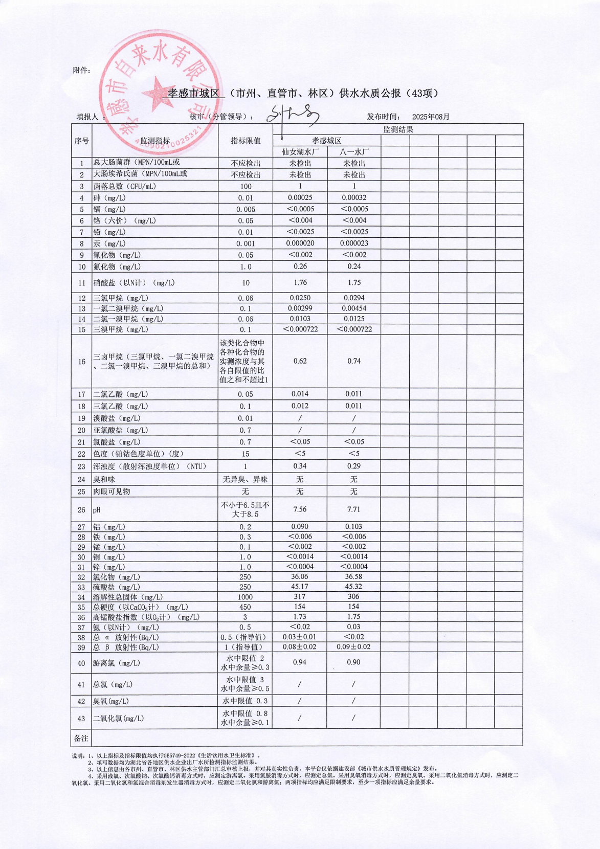 2025年8月水质报告