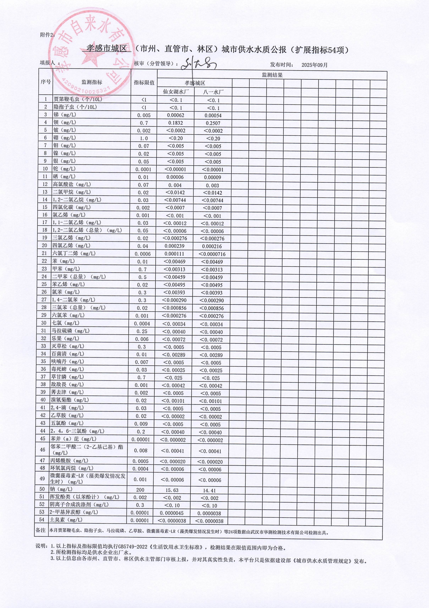 2025年9月水质报告