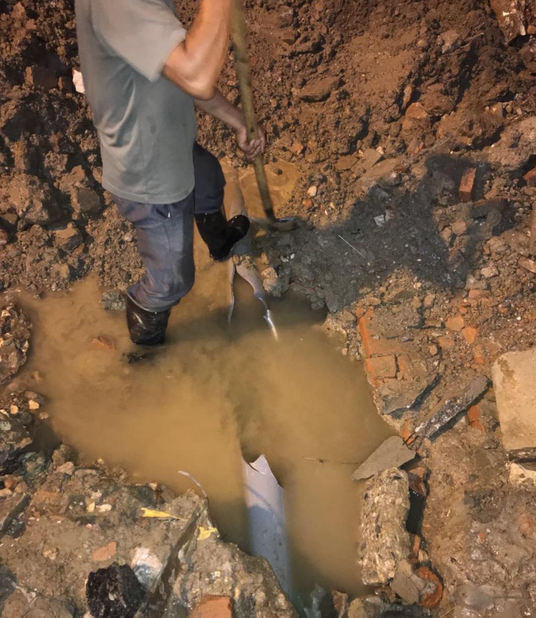 (工作人员正在维修破损水管)