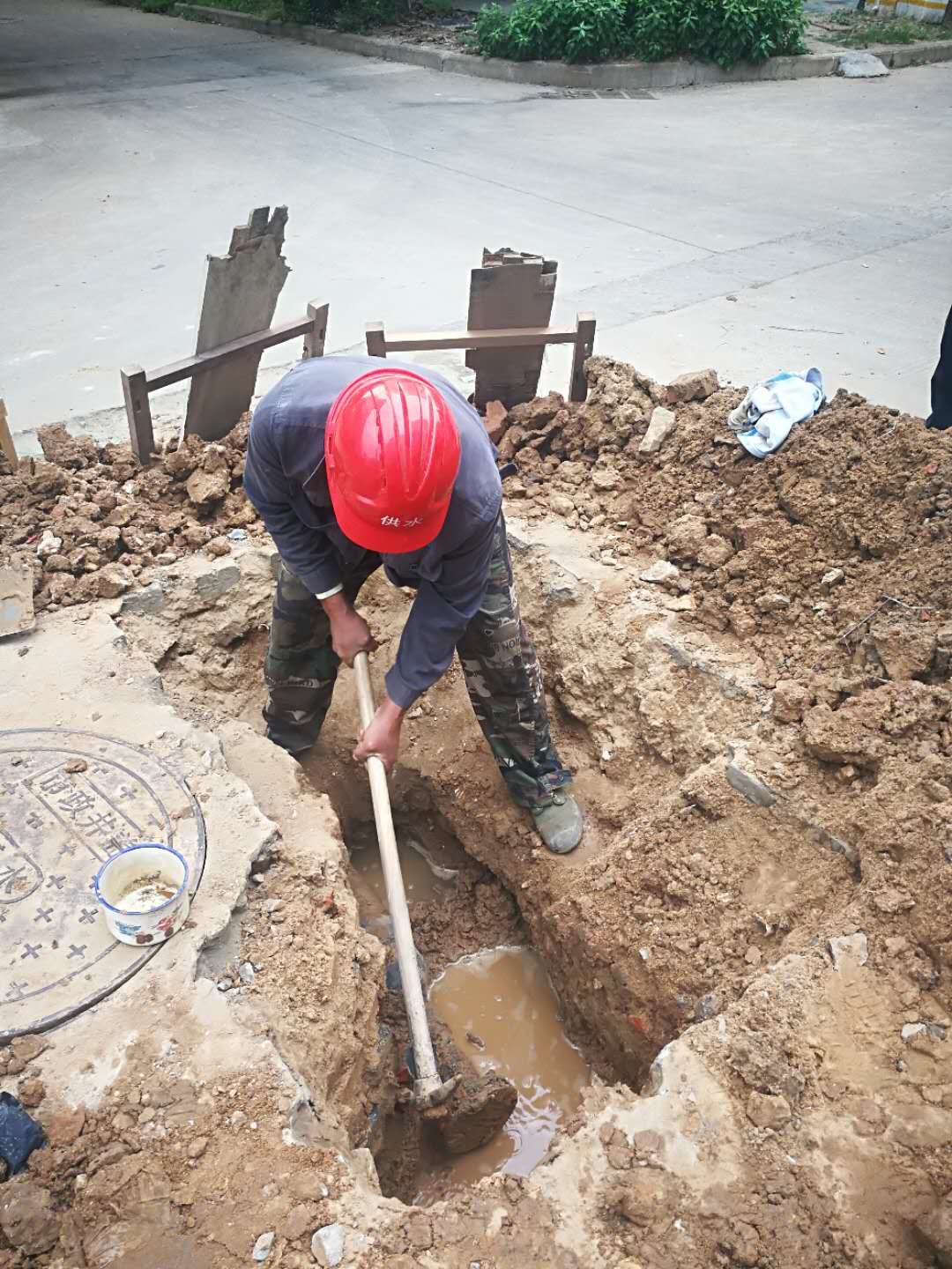 据了解,兵工花园小区于去年10月开始进行“三供一业”管道改造,5月13日上午,我公司管安部门组织验收时发现,该小区供水管网存在漏水现象。经工作人员初步检查,怀疑是小区内部自有管道存在漏点,后经定点查勘,确认为是小区内部PE110转63管道预留口堵板处漏水。此前,应小区业主要求,我公司进行“三供一业”管网改造时,对该小区部分原有供水管道予以保留。此次验收试压发现小区部分自有管道存在老化破损漏水现象。按规定,这种情况应由小区自行处理,秉着为人民服务的理念,我公司主动承担社会责任,根据现场的管道漏水情况,制定维修方案。对漏水点开挖、抽排水、更换垫片、封堵漏点,经过了3个多小时的紧急维修,最终圆满的解决了该小区管道漏水问题。