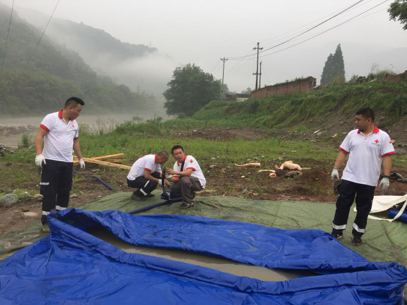 此前,何刚作为志愿服务队员曾多次前往四川等地进行供水应急救援。2013年4月,四川雅安突发特大震灾,我公司包括何刚在内的三名同志奔波1300多公里抵达重灾区芦山县龙门镇,驻扎灾区一线长达一个多月,为受灾群众提供清洁饮用水,解决了灾区饮水困难,保障了救灾工作的顺利进行。2018年11月,何刚作为技术指导,前往四川南充对中国红十字(四川)供水救援队进行了供水设备、制水流程的理论培训以及供水设备展开、制水及水质检测等技能演练。