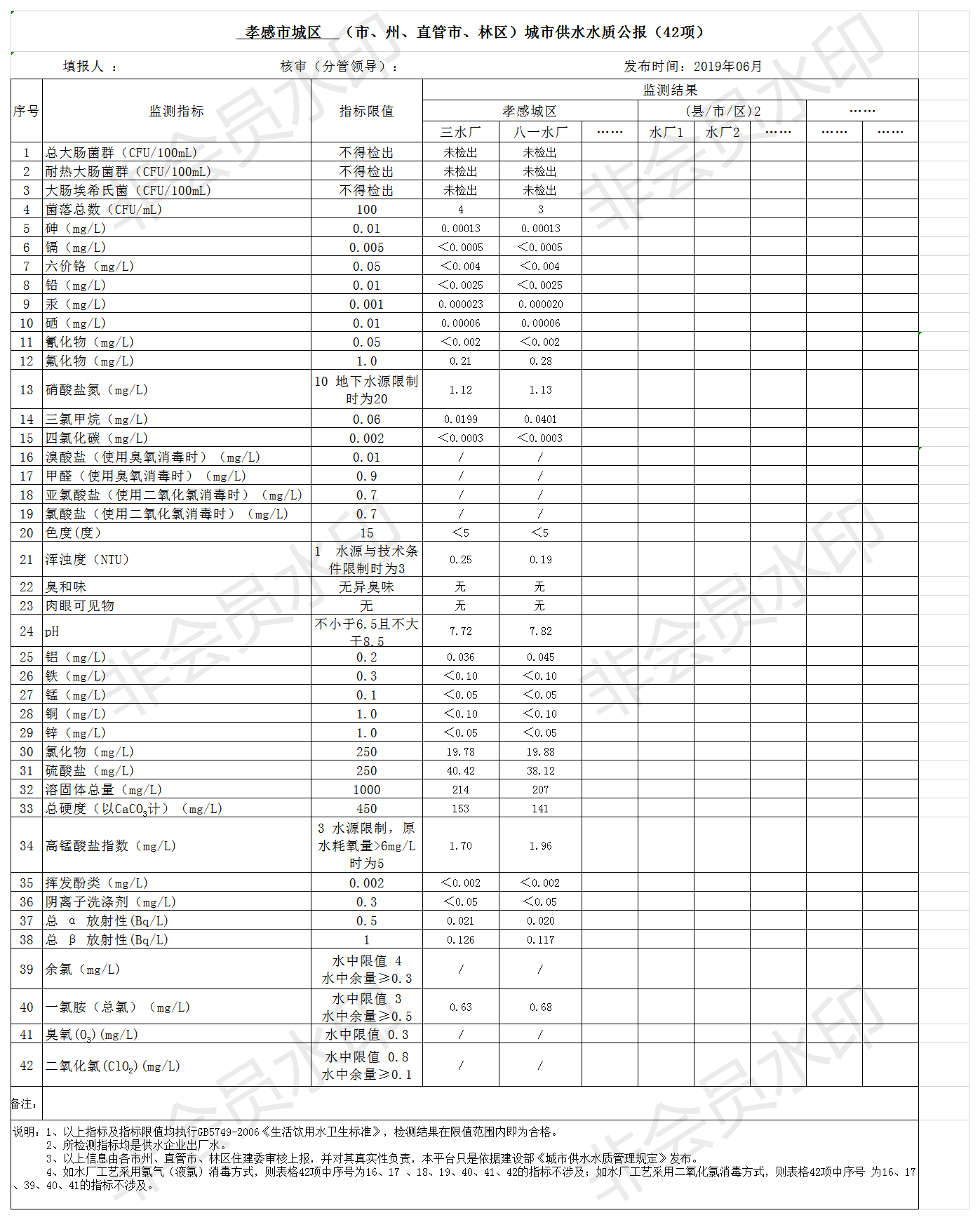 2019年6月水质报告