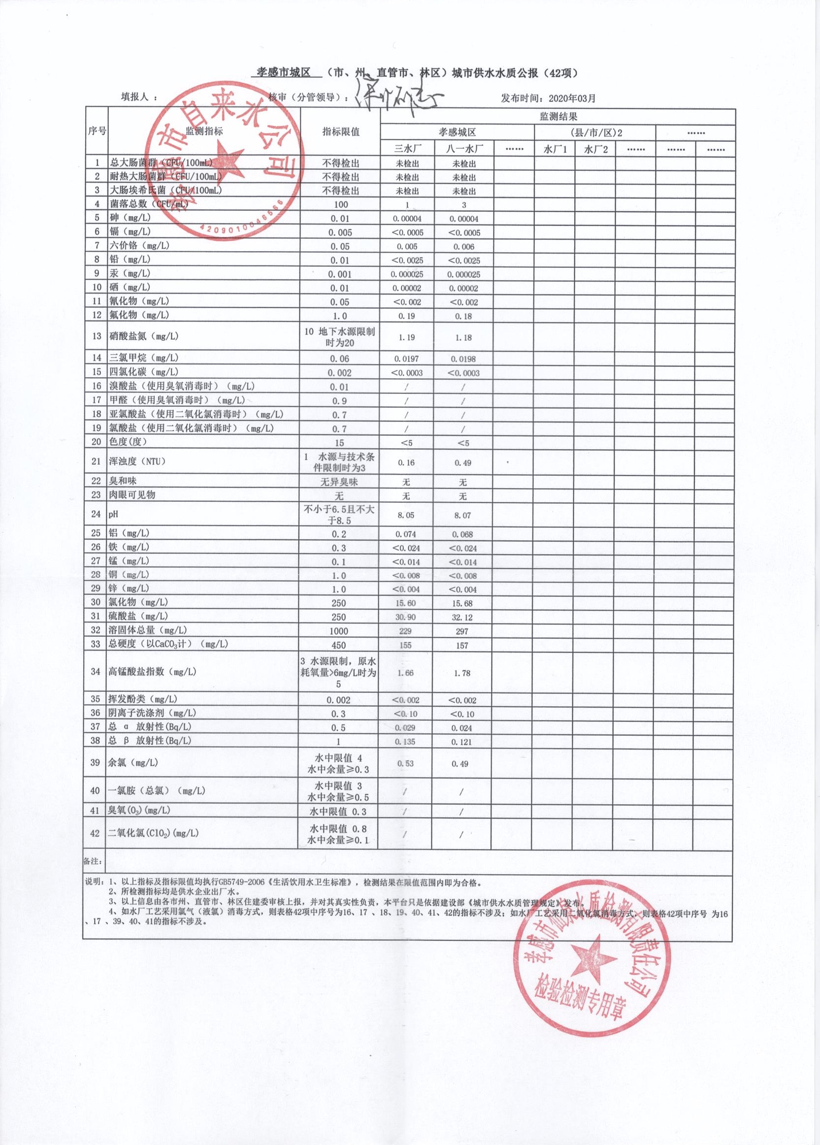 2020年3月水质报告